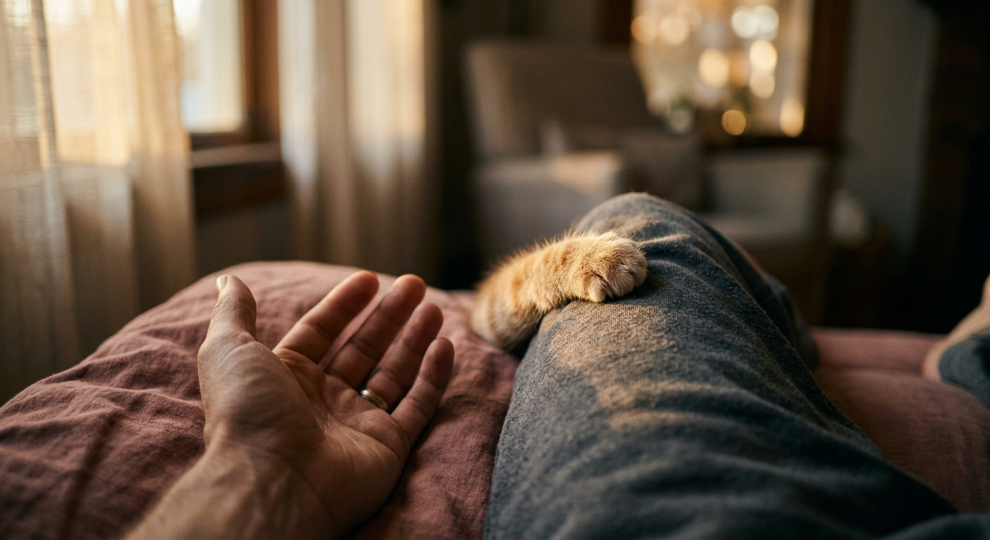 This presence becomes even more vital when language itself goes missing. A cat places one soft paw on your knee and starts to purr. A dog leans its whole warm weight against your shin, steady and unembarrassed. In those same stories, this is the kind of quiet attunement people kept returning to—pets simply being there, without demands for the right words.